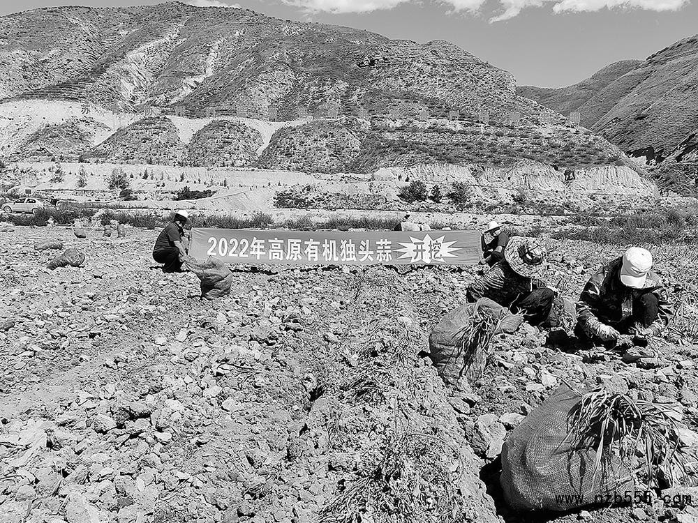 高原有機獨頭蒜種植基地收獲。圖片由青海省鄉村振興局供圖