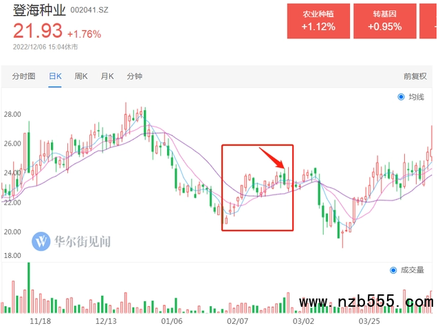 在此日期之前,登海種業等種業股股價低位異動,隨著消息的公布,次日農業板塊內多股悉數高開。