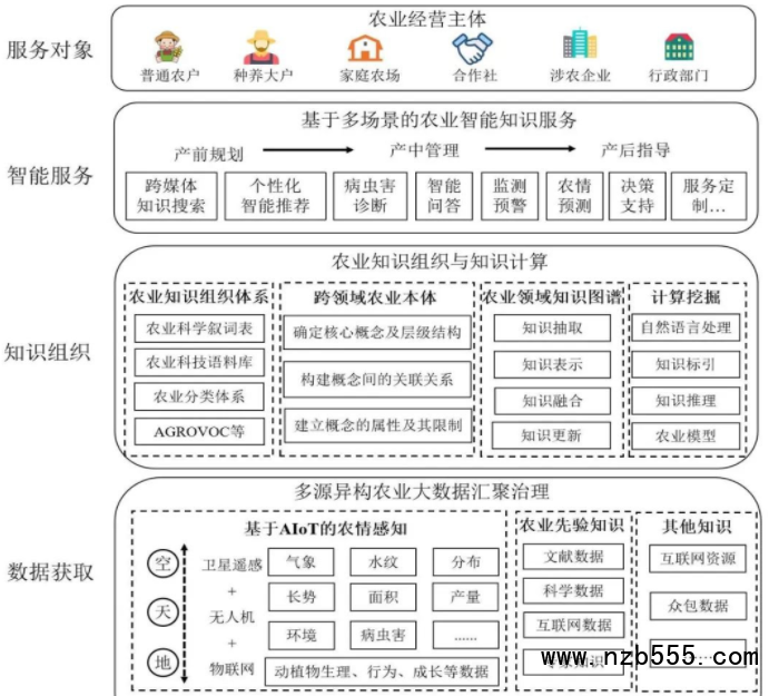 空天地AIoT全維度農情感知、多源異構農業大數據匯聚治理、知識建模、知識抽取、知識融合、知識推理、跨媒體檢索、智能問答、個性化推薦技術、決策支持等農業智能知識服務涉及的關鍵技術,逐步推動智慧農業的實現。