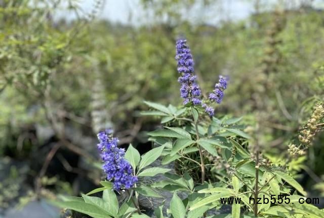 “這批穗花牡荊大苗,春秋兩季開花,花朵很像薰衣草,自帶清香,地里一共有600-700盆,現在半價40-50元/盆。”