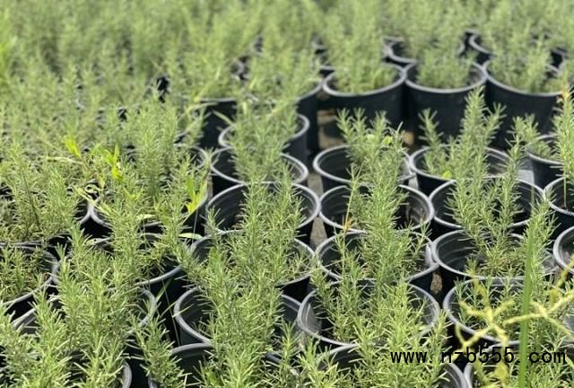 “迷迭香這個是新品種,半匍匐生長,四季常綠有芳香,小苗有2萬盆,原本10元一盆,現在5元/盆出貨。”