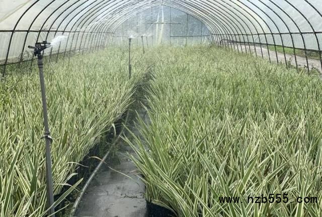 “花葉山菅蘭四季觀葉,從7月到11月都有開花,2加侖盆的有四五千株苗,原本是20元/盆,現在10元/盆。”