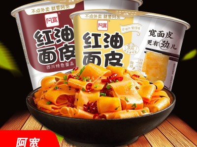 阿寬紅油面皮12桶整箱 酸辣粉寬面皮方便面麻辣味碗裝宵夜
