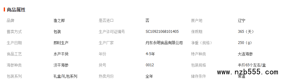 漁之郎淡干海參 海參禮盒半斤65個左右 廠家